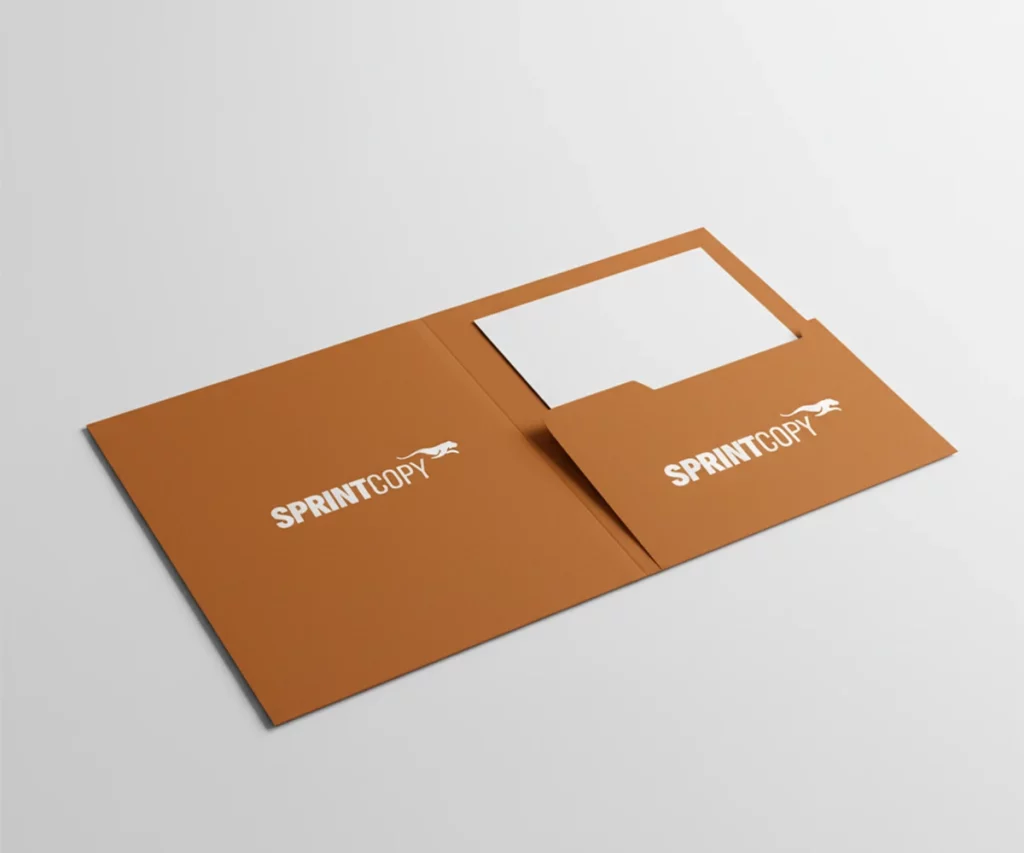 Las carpetas sin lomo son una alternativa ligera y funcional para presentaciones o entregas. Incorporan un bolsillo interior para organizar documentos de forma práctica. En Sprint Copy personalizamos cada carpeta con impresión a todo color y acabados profesionales. Una opción sencilla y económica para reforzar tu imagen en cualquier ocasión.