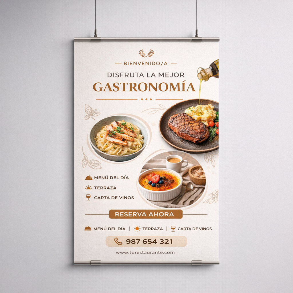 Los pósters para hostelería permiten reforzar la identidad del local, destacar platos, promociones o mensajes clave de forma visual y directa.